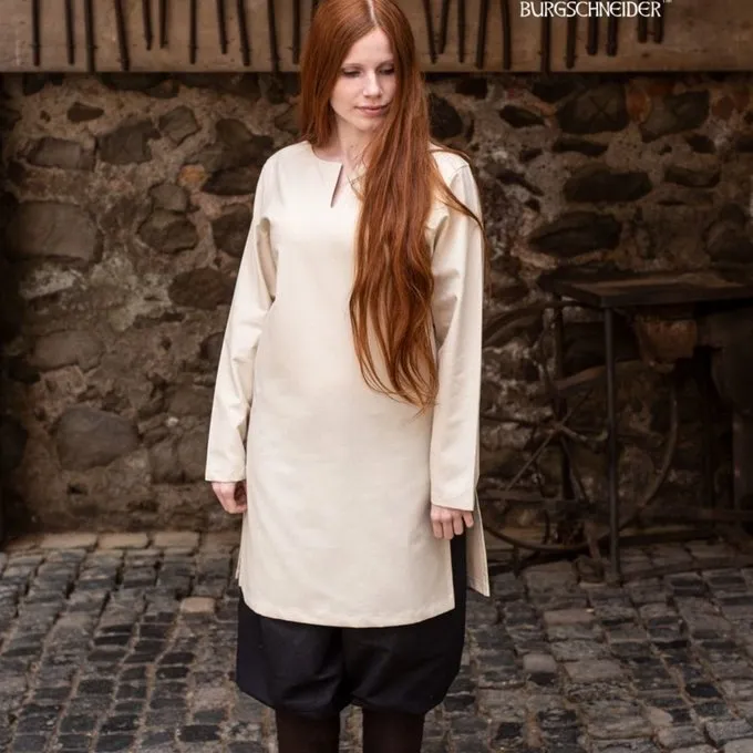 Vous êtes une jeune fille au bouclier et au loin, vous entendez les cris de l’ennemi. Votre sang pompe plus vite, vous êtes prêt pour la bataille. Pour cela, vous avez également besoin de vêtements confortables, tels que cette tunique Greta. Cette tunique est le vêtement idéal pour les femmes qui pratiquent un GN ou un guerrier ou une jeune fille du bouclier du haut Moyen Âge, mais également pour le cosplay de personnalités féminines fortes telles que Jeanne d’Arc ou pour les personnages de Game of Thrones et Vikings.