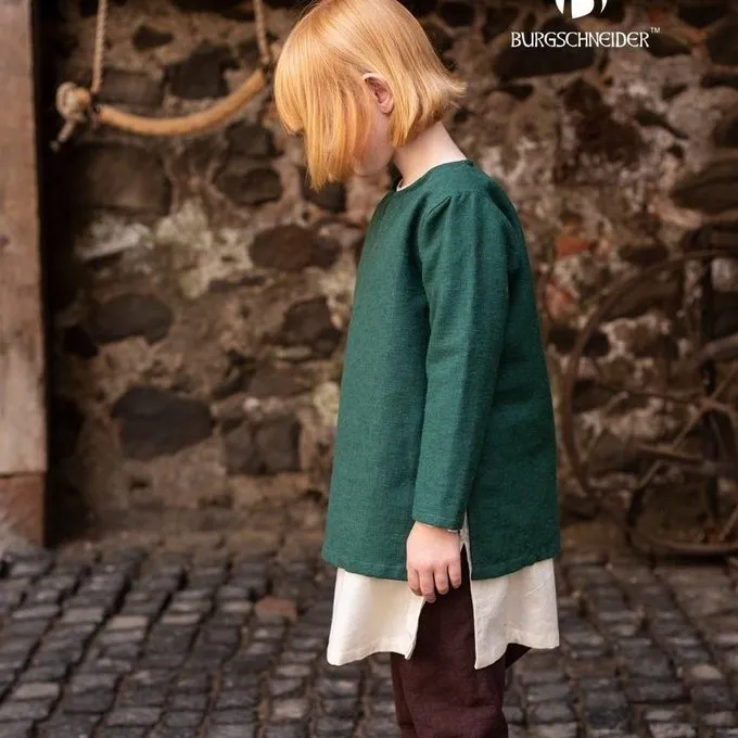 Habillez-vous de façon médiévale! Cette tunique pour enfants est basée sur un véritable objet historique: la tunique Bernuthsfeld du Danemark. Il a été porté entre 680 et 775. C’est un modèle assez universel et peut être utilisé des Mérovingiens jusqu’au Haut Moyen Age. Aussi parfait pour GN, Cosplay et théâtre.