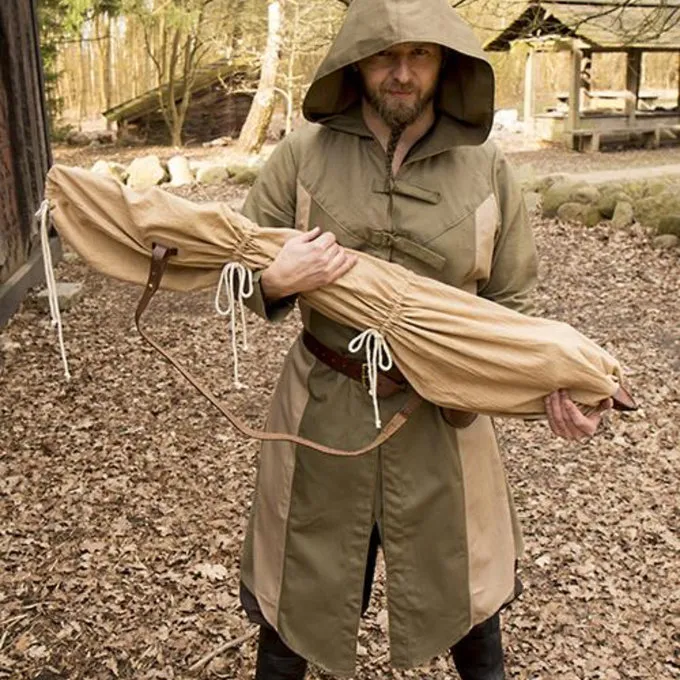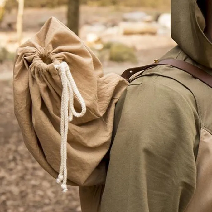Ce sac est conçu pour stocker et transporter des articles sur votre dos comme des armes de LARP et de l’acier et d’autres fournitures reconstitution et LARP tels que des vêtements. Il est particulièrement adapté pour les épées en latex et en acier, mais aussi pour les axes, les petits arcs et autres. Il est en coton et un renfort en cuir au fond. Il est équipé d’une ceinture marron en cuir de haute qualité que vous pouvez porter sur vos épaules et le dos. Le sac a trois lacets à l’extérieur, que vous pouvez tirer pour empêcher le contenu de se déplacer.