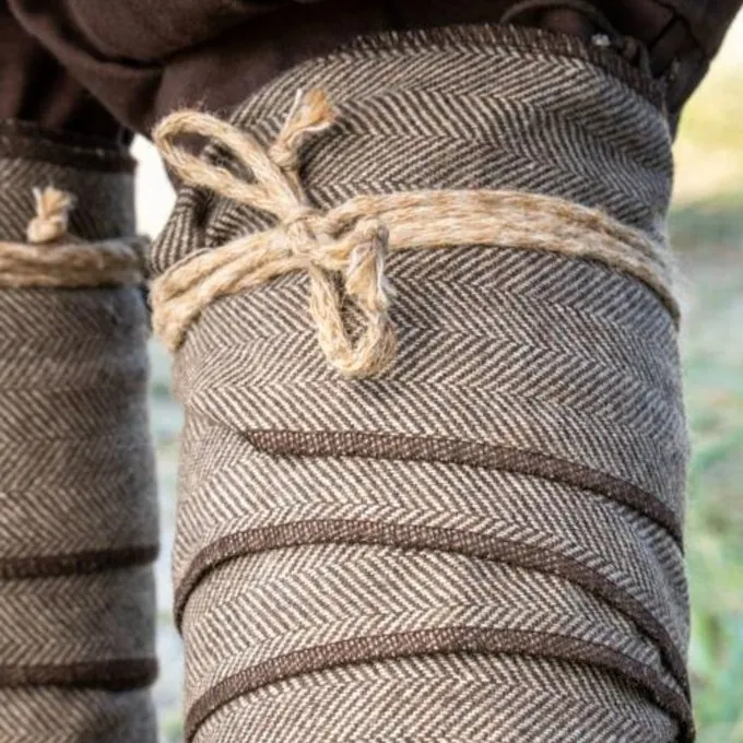 Ces enveloppes de jambe sont indispensables pour une tenue de Viking Homme! Les Vikings portaient des enveloppements de jambe pendant des siècles, de protéger leurs jambes contre le froid et la pluie. Ils sont fabriqués dans le tissu Historic Herringbone et la laine gardera vos jambes au chaud pendant les soirées froides et en hiver. Ils sont idéaux pour les larpes, la reconstitution, le cosplay et les batailles de Larp. En combinaison avec de grands pantalons vikings, ils complètent votre costume. Remarque: une fibule n’est pas incluse. Les fibules pour les emballages de la jambe sont disponibles séparément.