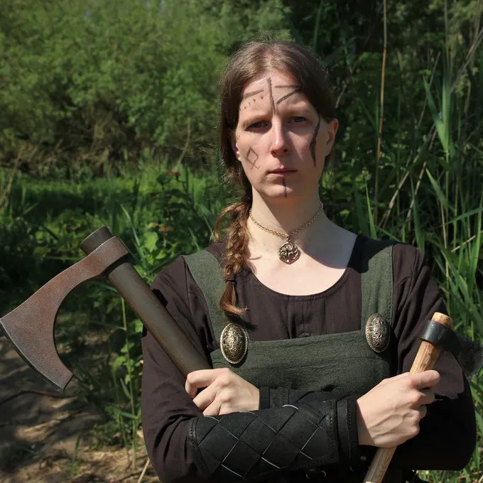 Ce vêtement de dessus est fait de coton et est inspiré par le hangerod scandinave. Sur les deux côtés sont des cordes pour un ajustement optimal.