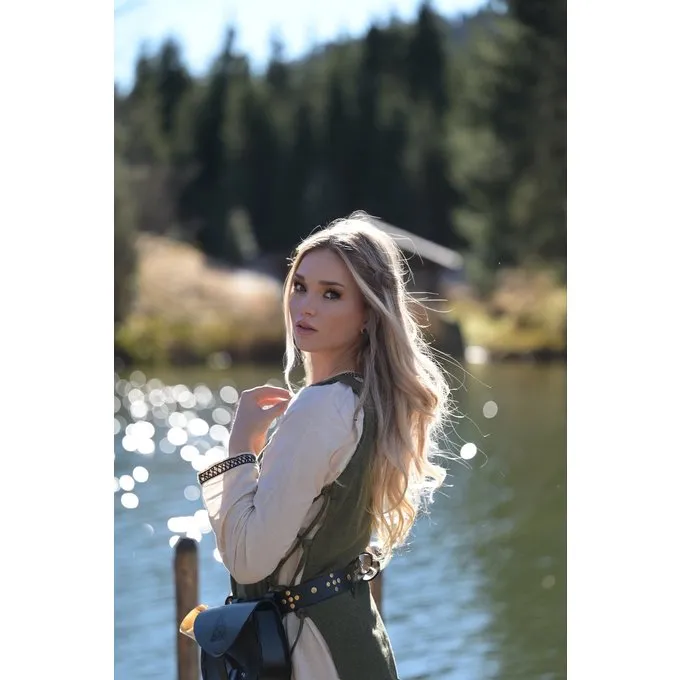 Ce hangeroc est fait au début du style médiévale / Viking. Il est en coton rugueux et peut être fermé avec des cordons sur les côtés. Le Hangeroc est disponible en taille S / M, L / XL et XXL en noir, vert, brun et bleu
