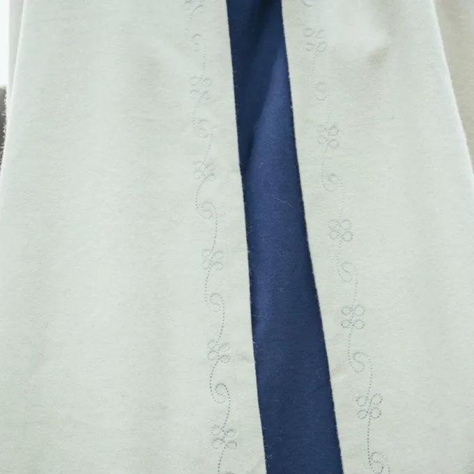 Ce manteau de mélange de laine a des bords avec des motifs élégamment brodés. Convient à la fois à la reconstitution et au LARP. Le manteau a des sangles à l’avant pour la fixation.