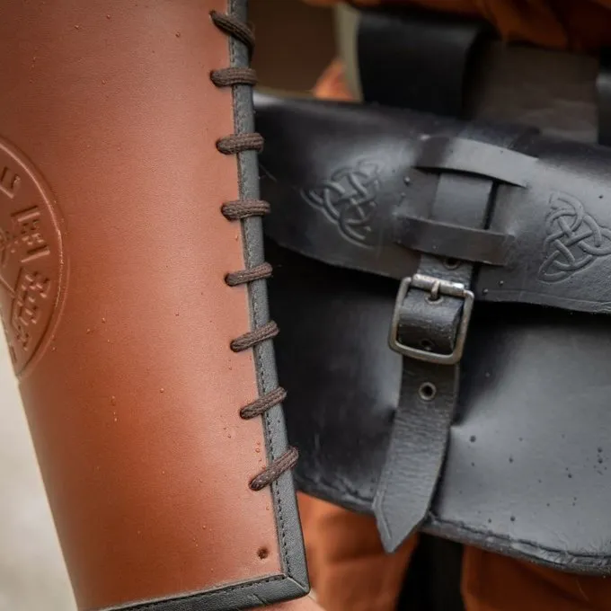 Ce sac est élégamment décoré avec des motifs celtiques de noeud sur l’ouverture et les boucles. Il peut être utilisé pour (Early) reconstitution médiévale et LARP et il est également parfait pour les festivals. Avec les deux boucles, vous pouvez accrocher le sac à votre ceinture pour keepsaving votre porte-monnaie et d’autres effets personnels.