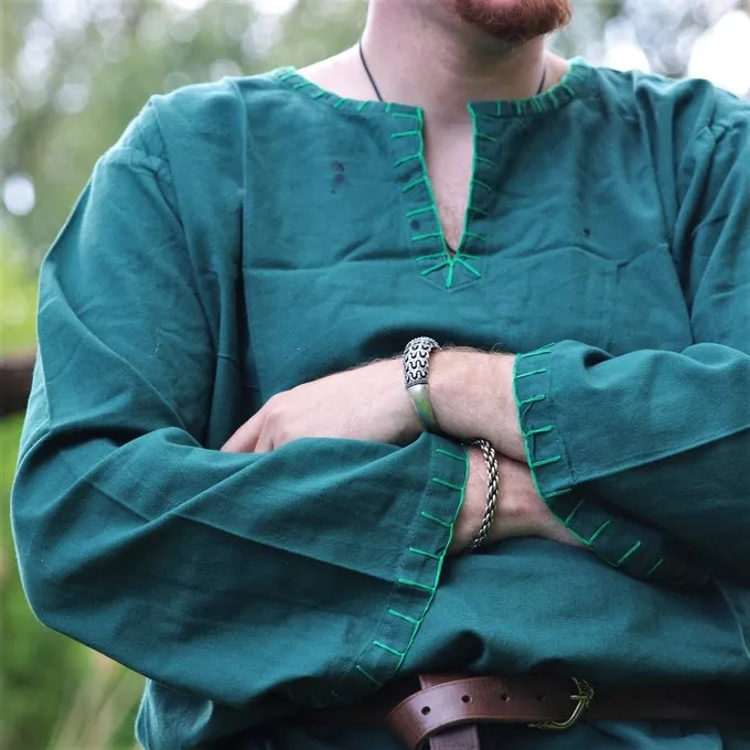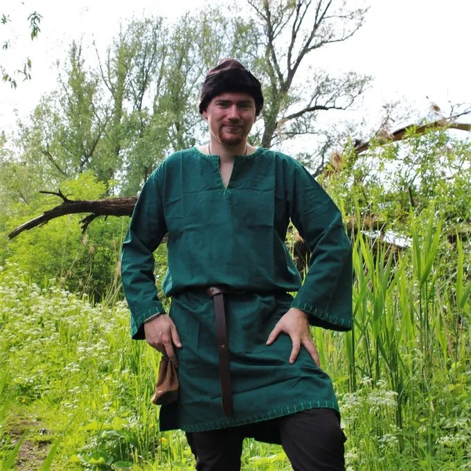 Cette tunique sans âge a été portée à partir d’env. la République romaine jusqu’en 1400 après JC. Les originaux peuvent être vus dans plusieurs manuscrits et sur des peintures murales de cette longue période.