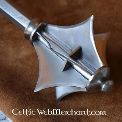 Au XVe siècle, l’armure s’était développée au point où elle était presque imperméable aux coupes et aux poussées des épées. Développé à partir de l’arme la plus ancienne de l’homme, le club, cette lourde masse allemande peut endommager l’armure et envoyer un ennemi pour vaincre. Cette conception exceptionnelle a 8 bords et est en acier avec un revêtement anti-corrosion noir pour reproduire la couleur de l’original. Le bas de la poignée est enveloppé en cuir noir pour une meilleure poignée.