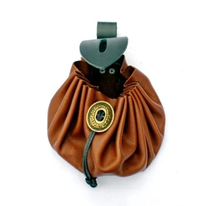 Cette poche d’argent est basé sur des exemples médiévaux fin du monde 1400. Le cuir souple est serrée avec un lacet de cuir, à laquelle la boucle décorative est fixée. La boucle ferme le sachet en le faisant coulisser à travers une fente dans le rabat. Le sachet est fait d’une cuir de vache mm d’épaisseur et a un rabat de 2 mm d’épaisseur. La boucle de courroie est adapté pour une ceinture jusqu’à 7 mm. La poche est d’environ 17 x 13 cm de large.