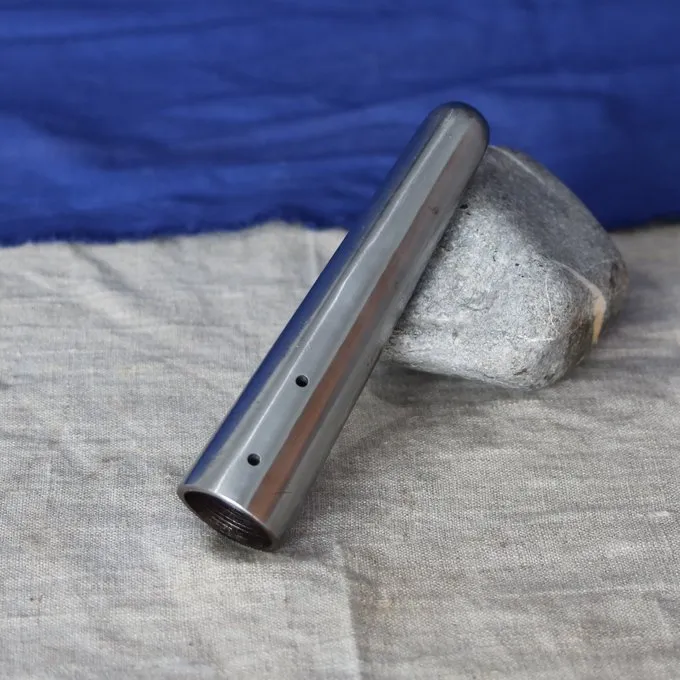 Matériau: 2 mm en acier au carbone d’épaisseur / Longueur: 13,5 cm / Max. diamètre intérieur: 2,9 cm / diamètre interne au niveau de premiers trous de fixation: 2,6 cm / Min. diamètre intérieur: 1,6 cm / Basé sur un original historique