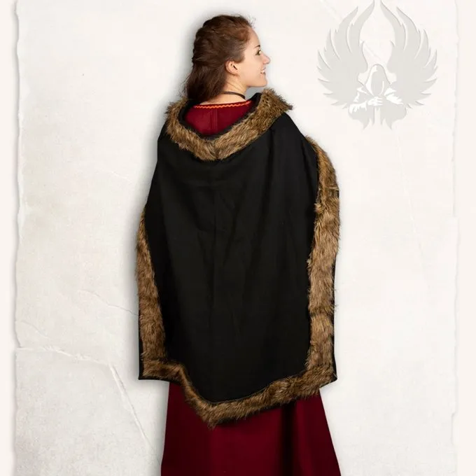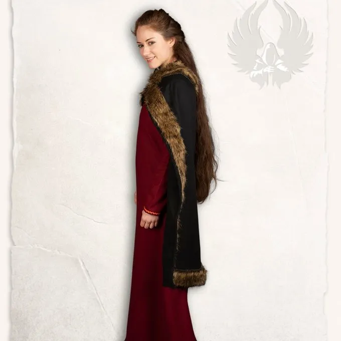 Un manteau merveilleux pour cosplay, LARP, reconstitution historique et Viking et costumes médiévaux. Le manteau est à deux couches et a une garniture en fausse fourrure qui ressemble la vraie fourrure. S’il vous plaît noter: le manteau est livré sans péroné.