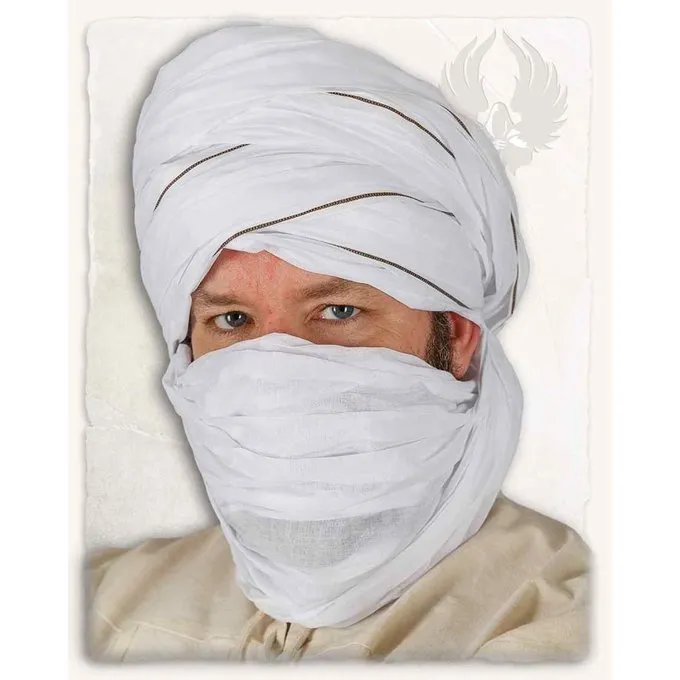 Ce turban est parfait pour représenter des rôles orientaux. Avec une longueur d’env. 420 cm, il est assez long pour se replier de différentes manières. Une description exacte de la façon de procéder peut-être facilement sur Internet. Ce turban est une importation originale. Il est donc absolument authentique et est porté sous cette forme dans de nombreux pays du monde. Nous vous recommandons de le laver dans le cycle de lavage des mains avant de le porter pour la première fois.