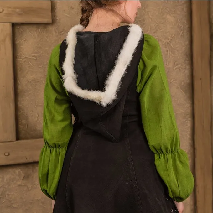 Cette robe unique est faite de cuir tanné végétal de haute qualité et de la fourrure de lapin. Une belle robe pour les fêtes de fantaisie et cosplay! La robe a une capuche bordée de fourrure et lacets pour un ajustement plus serré. Vous pouvez combiner cette robe sur une robe de votre choix, il est donc approprié pour chaque saison. La fourrure de lapin provient des éleveurs biologiques en Allemagne, a été utilisé aucune fourrure de l’élevage industriel ou la chasse.