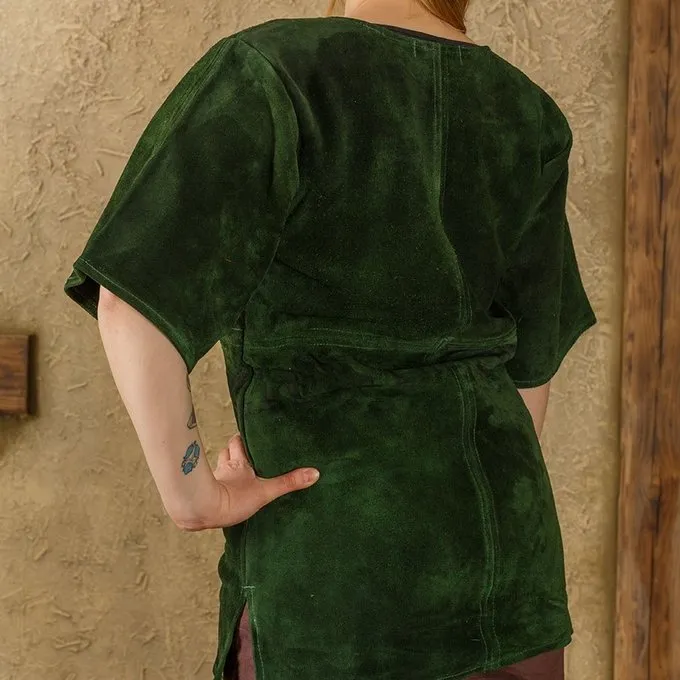 Cette tunique est adaptée pour la reconstitution, et LARP cosplay. Cette tunique est en cuir suédé. La tunique a une encolure haute et manches larges. La tunique comporte des fentes sur les côtés. Tout cela donne à l’utilisateur une grande liberté de mouvement et fait une bonne base pour de nombreux costumes.